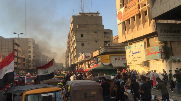 تنشر وكالة من كربلاء الخبر صوراً للمتظاهرين قرب ساحة التحرير وسط العاصمة بغداد في يومهم الـ16.