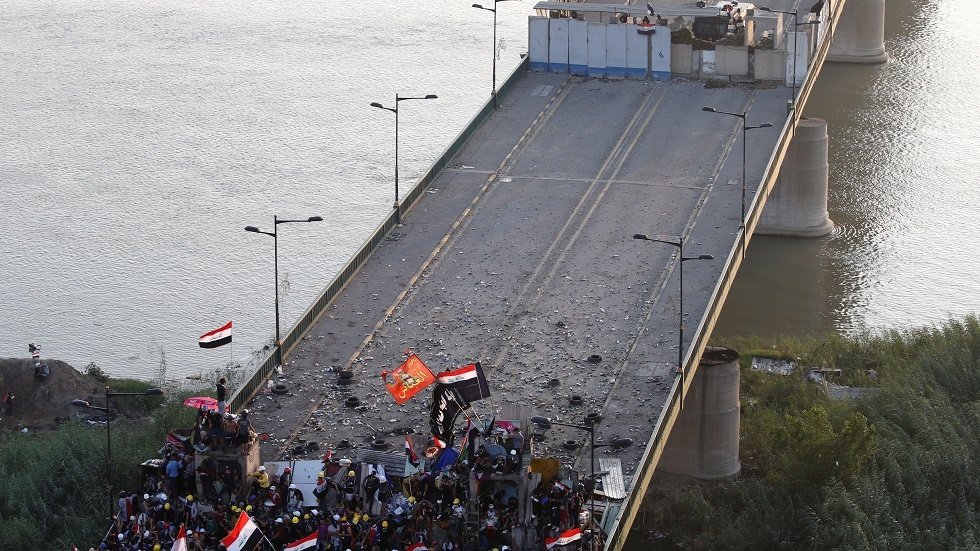 أفاد مصدر أمني، السبت ، بأن المتظاهرين سيطروا على الحاجز الأول والثاني لجسر السنك وسط بغداد.
