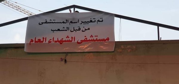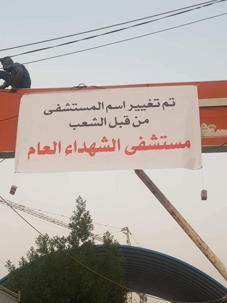 وقال مراسل وكالة من كربلاء الخبر ، إن المتظاهرين في محافظة النجف، قاموا مساء اليوم، بتغيير اسم مستشفى في المحافظة إلى "مستشفى الشهداء".