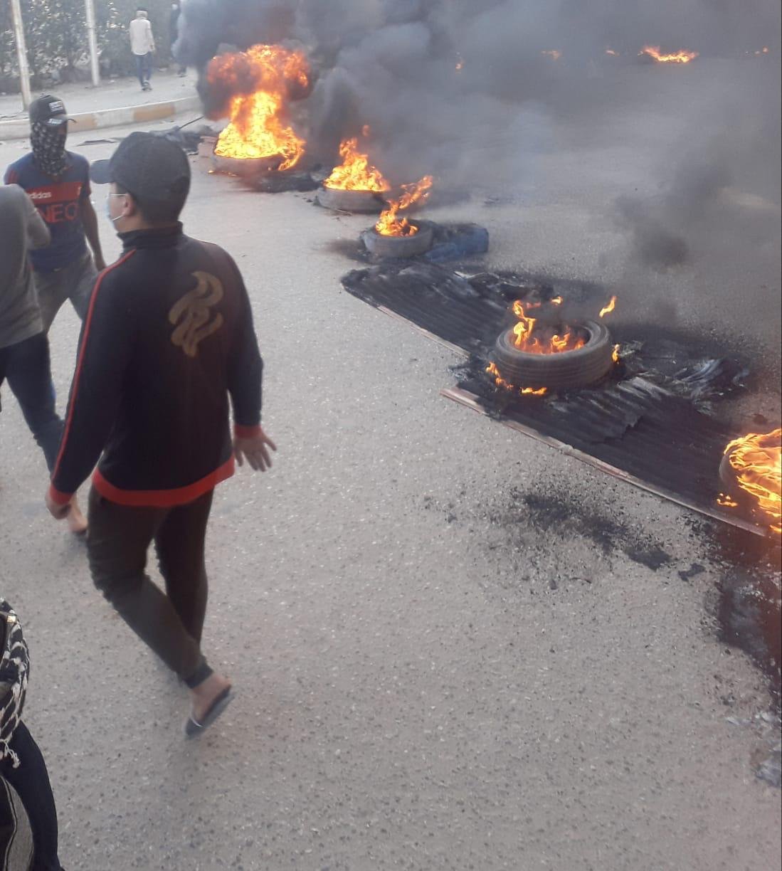 ان "متظاهرين اغلقوا طريق الديوانية – قضاء الحمزة وكذلك ديوانية - سنية وفلكة النسيج منذ صباح اليوم".