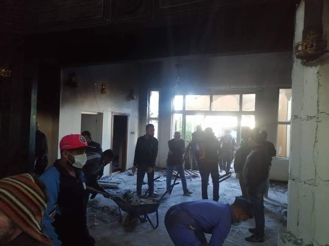 بالصور.. شباب من ذي قار يباشرون بتأهيل مقر الحشد بالمحافظة بعد احراقه امس