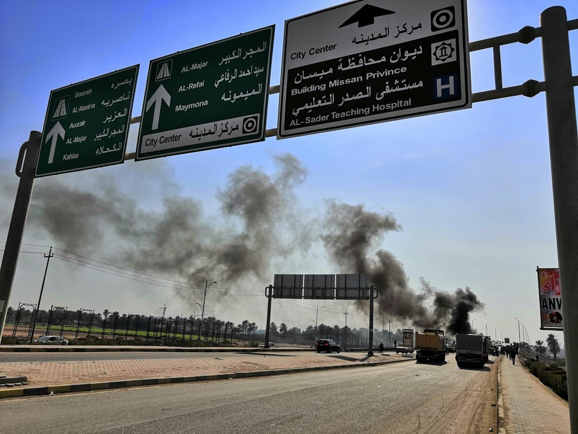 أفاد مصدر أمني، الاثنين، بقيام متظاهري محافظة ميسان بقطع الطريقين المؤديان الى محافظتي بغداد والبصرة بالاطارات المحترقة، مشيرا الى أن المتظاهرين قاموا ايضا بقطع عدد آخر من الطرق داخل المحافظة بينها جسر الجمهورية.