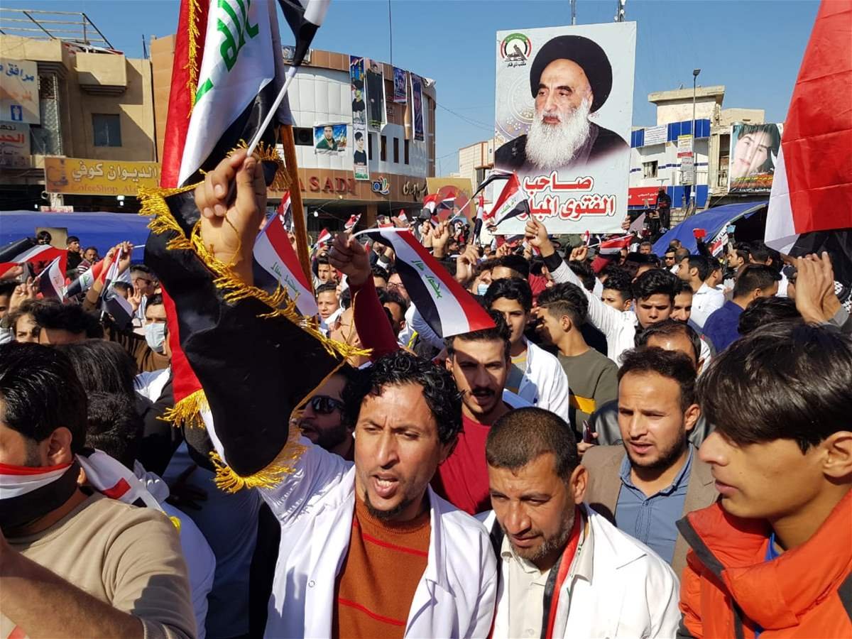 ويواصل المتظاهرون في بغداد، ومحافظات وسط وجنوب العراق، احتجاجاتهم للشهر الرابع على التوالي رغم استقالة رئيس الحكومة عادل عبد المهدي، مطالبين بحل البرلمان، ومحاكمة المتورطين بقتل المتظاهرين، وإجراء انتخابات مبكرة.