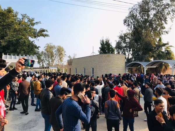 طلبة جامعة القادسية يغلقون البوابات الرئيسية للجامعة ويمنعون دخول الموظفين