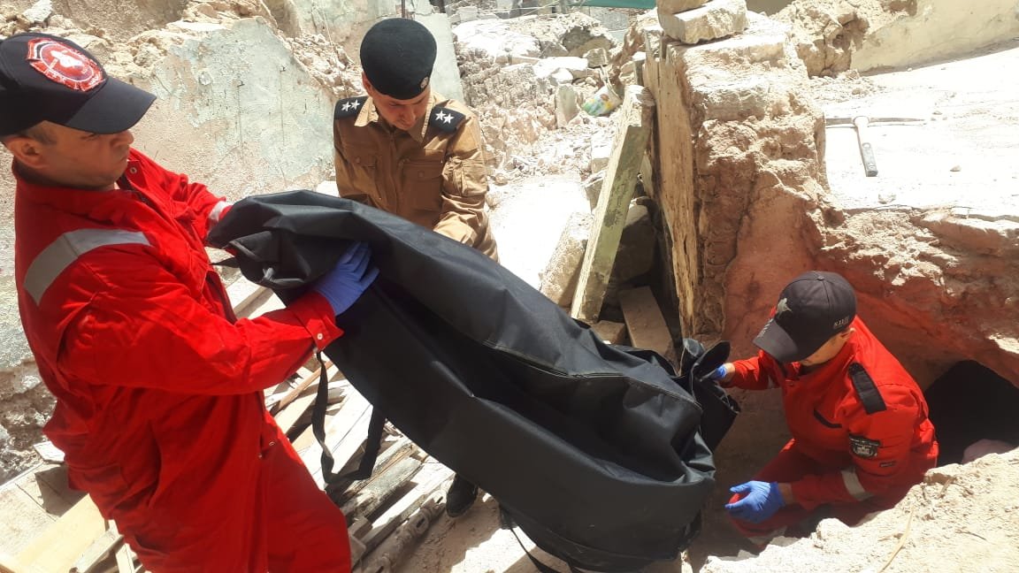 تنشر وكالة من كربلاء الخبر صوراً لقيام الدفاع المدني بانتشال جثة في ايمن الموصل تعود لأيام التحرير.