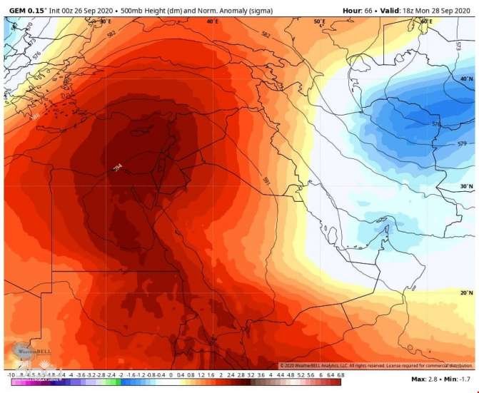 ولفت عطية، إلى أن “الكتلة الحارة ستتمركز وسط وشمال العراق وبلاد الشام وشرق أوروبا”، موضحاً أن “الارتفاع بدرجات الحرارة فوق المعدل سيستمر على الأقل لمدة (10- 14) يوماً”.