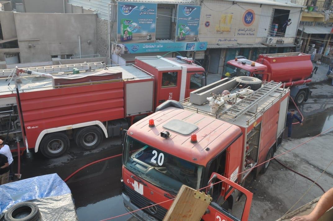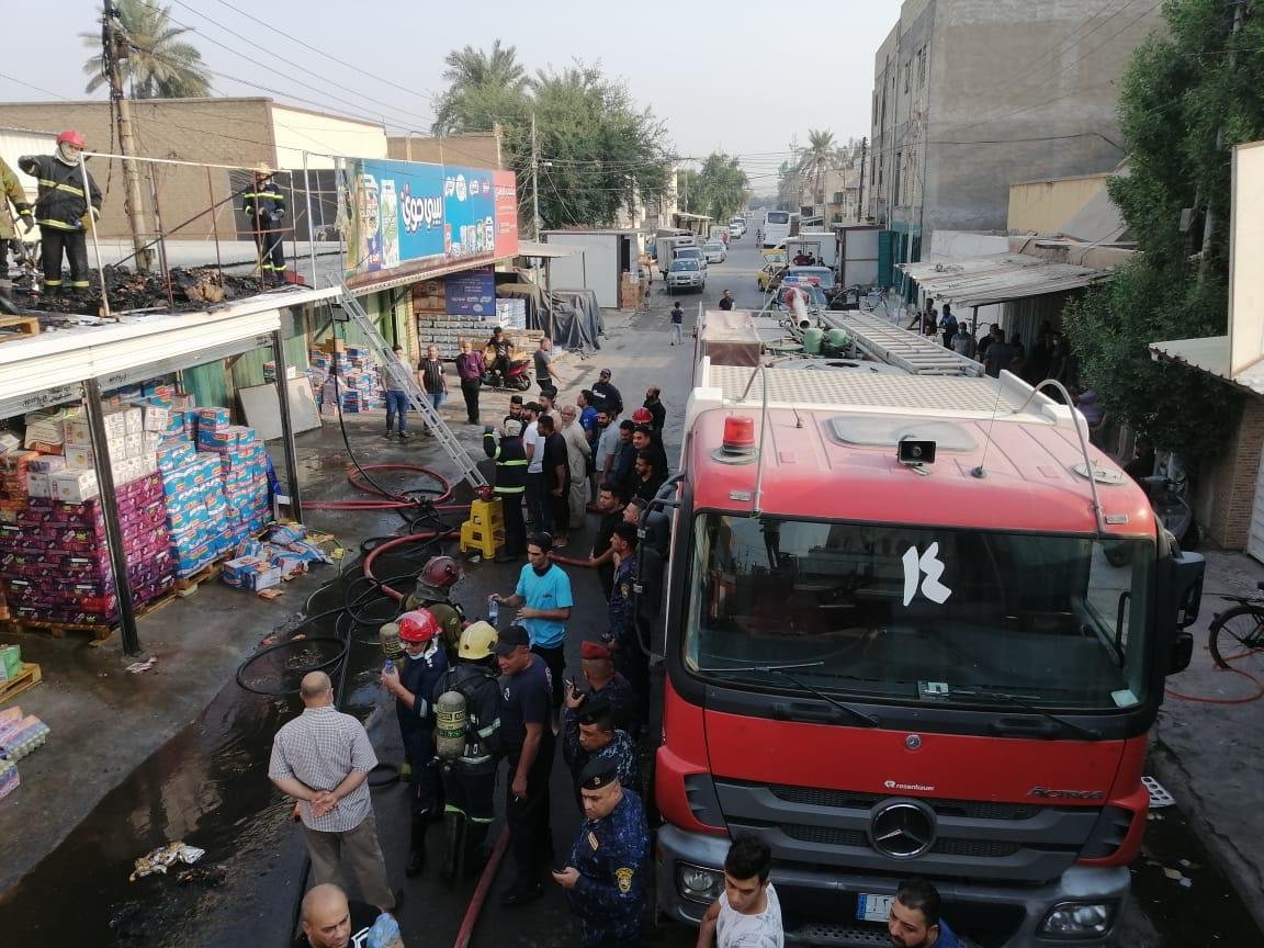وقالت المديرية في بيان إن "فرق الدفاع المدني تمكنت من تطويق واخماد نيران اشتعلت داخل عدد من المخازن والمحال التجارية لبيع المواد الغذائية في سوق البياع جنوبي بغداد بإشراف ميداني من مدير عام الدفاع المدني اللواء كاظم سلمان بوهان".