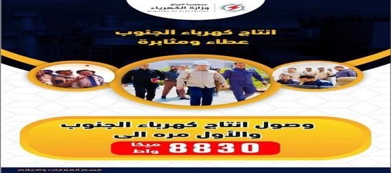 لأول مرة ..وصول انتاج كهرباء الجنوب الى ٨٨٣٠ ميكا واط