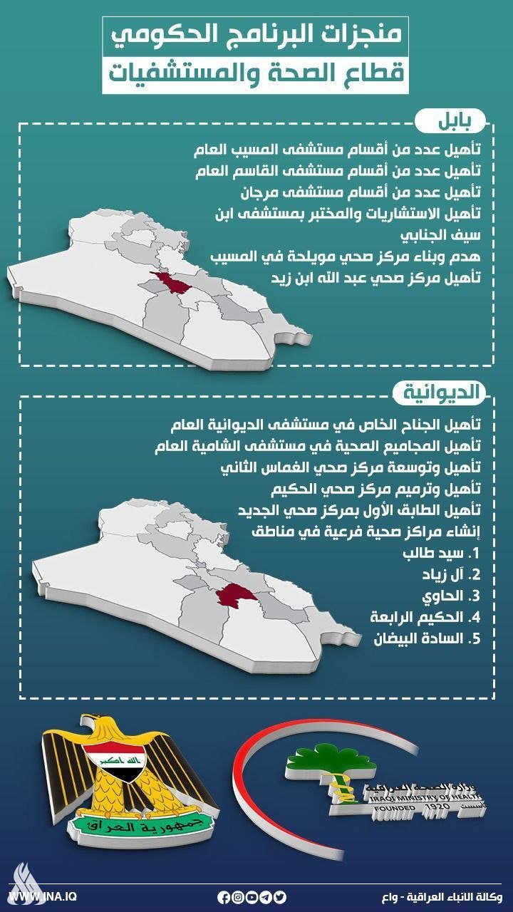 بالإنفوغراف.. منجزات البرنامج الحكومي في قطاع الصحة والمستشفيات في بابل والديوانية