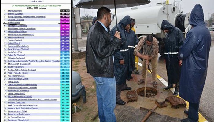 كربلاء الاولى بالعراق وخامسة عالميا بتساقط الامطار