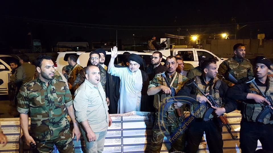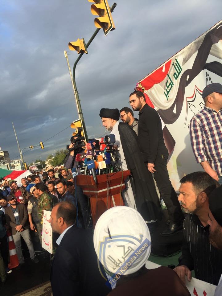 بالصورة السيد مقتدى الصدر يزور المعتصمين والقوات الامنية في باب المنطقة الخضراء