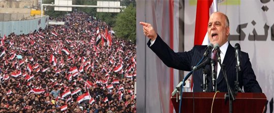 العبادي يدعو المتظاهرين الى الالتزام بالقانون ومنع المظاهر المسلحة
