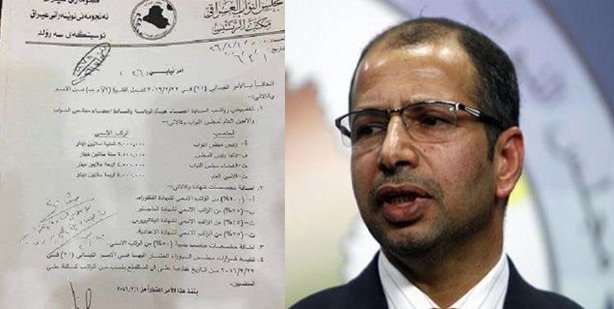 مكتب الجبوري ينشر وثيقة تخفيض رواتب هيئة رئاسة البرلمان والنواب