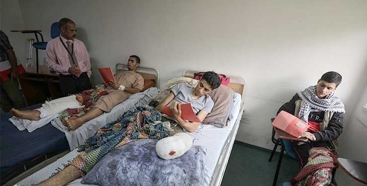 وزير الصحة ورئيس الوزراء الفلسطيني يتفقدان الجرحى الفلسطينيين في مدينة الطب ببغداد