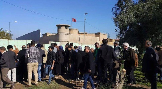 العشرات يتظاهرون امام السفارة التركية ببغداد احتجاجا على تدخلات انقرة