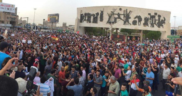 متظاهرو بغداد يتوافدون الى ساحة التحرير وسط العاصمة بغداد تمهيدا لانطلاق التظاهرات