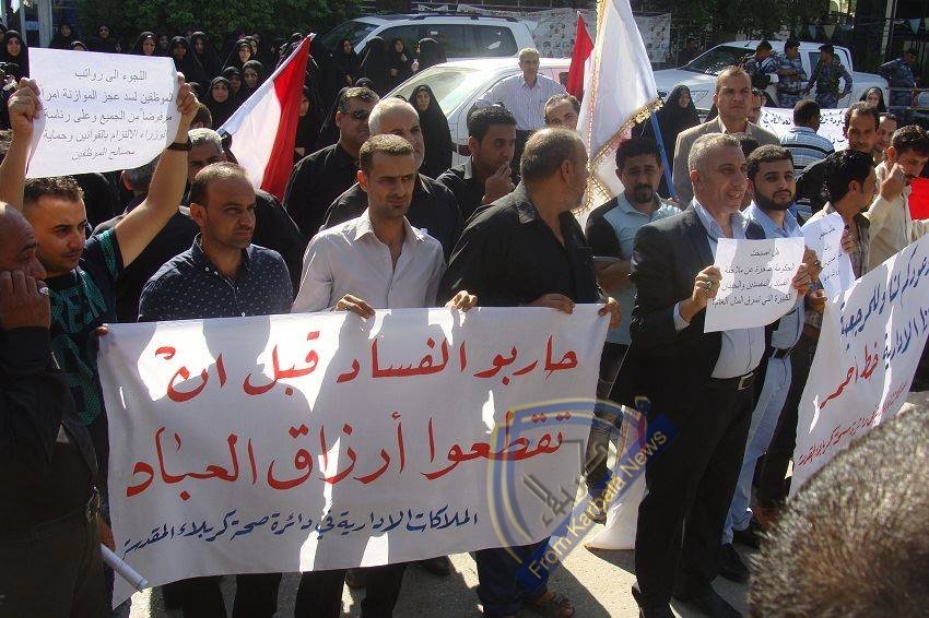 موظفو صحة كربلاء يتظاهرون ويحذرون من المساس بمخصصاتهم