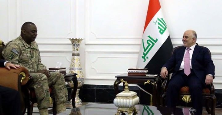 الجنرال اوستن يؤكد للعبادي استمرار دعم الولايات المتحدة للعراق في حربه ضد الارهاب