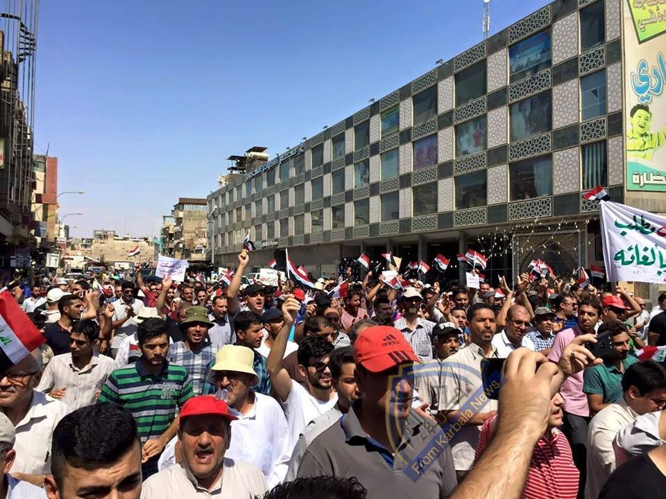 آلاف المواطنين في كربلاء يطالبون بفتح ملفات الفساد الاداري والمالي والكشف عن رؤوس الفساد في المحافظة