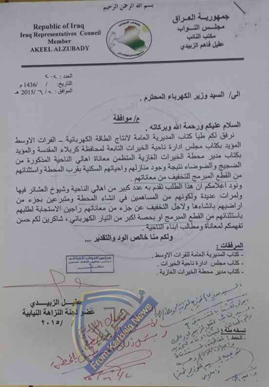 الخيرات أول ناحية في كربلاء تستثنى من القطع المبرمج للتيار الكهربائي