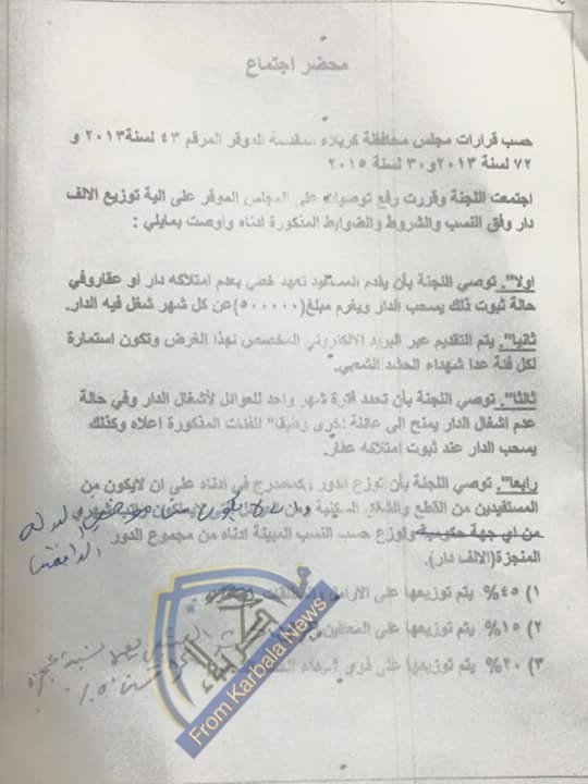 مجلس كربلاء يكشف عن ضوابط توزيع دور واطئة الكلفة الخاصة بالفقراء والبالغة 1000 دار
