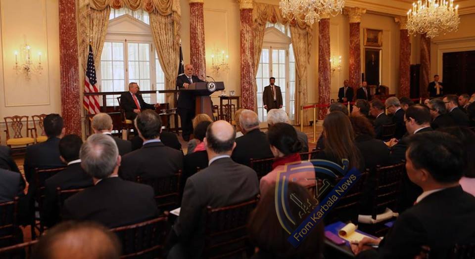 بالصور ... رئيس الوزراء الدكتور حيدر العبادي خلال توجيه كلمة في اجتماع ممثلي التحالف الدولي ضد الارهاب في واشنطن