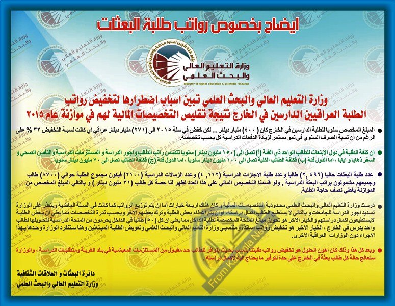 التعليم تصدر بيانا توضحيا بشان رواتب طلبة البعثات