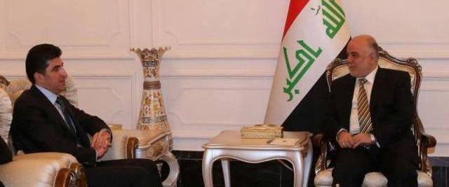 العبادي ونيجيرفان بارزاني يبحثان المسائل العالقة والاتفاق النفطي بين بغداد واربيل
