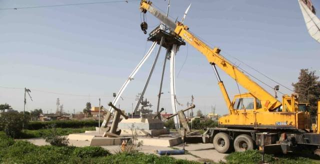 كركوك تزيل نصب "السيوف الأربعة" بمدخل شركة نفط الشمال بتوجيه من أمانة مجلس الوزراء
