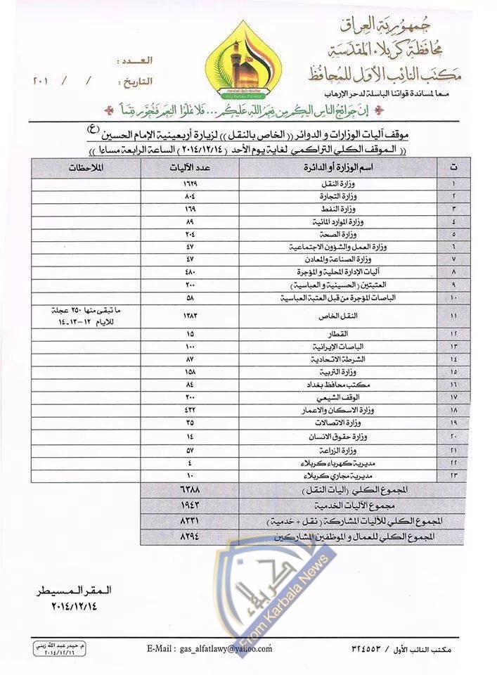 نائب محافظ كربلاء يكشف بالارقام عن اعداد الموظفين والآليات المشتركين في زيارة الاربعين