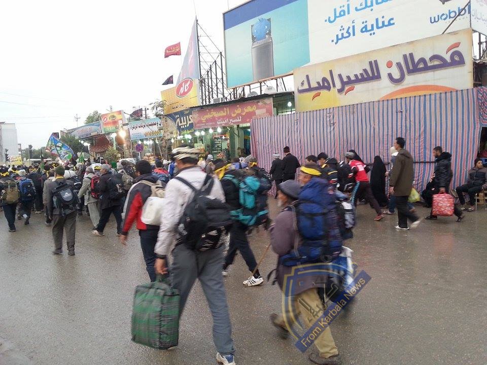 الجموع المليونية تواصل خروجها من كربلاء مع سقوط لزخات المطر