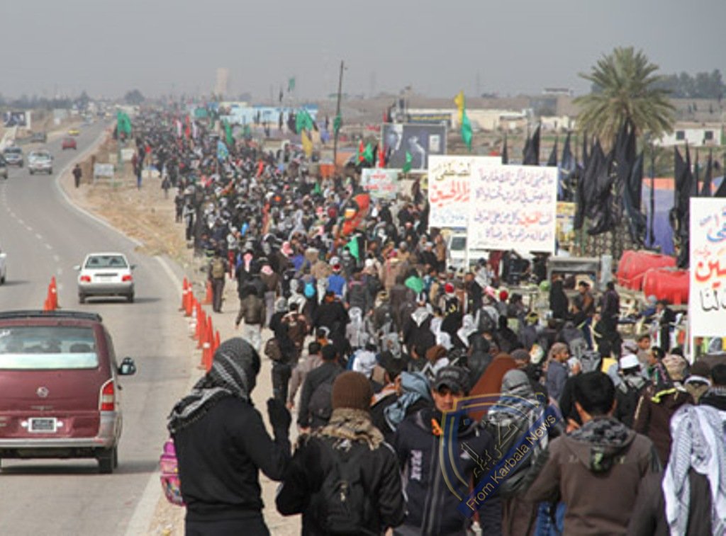 الآلاف من أهالي المثنى يتوجهون سيراً على الأقدام لمقام الامام المهدي (ع) لإحياء الاربعينية
