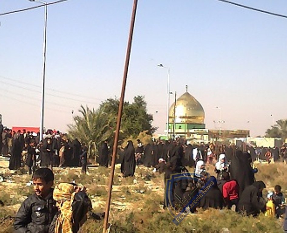 اهالي الكوت يتدفقون الى مرقد السيد ابو الحسن سيرا على الاقدام لاحياء الاربعين