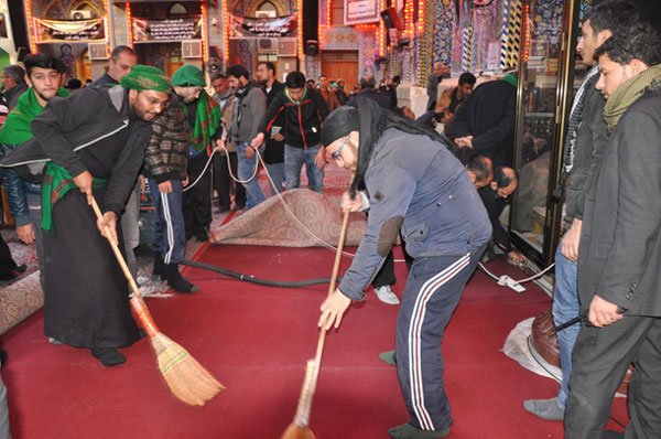10 الاف متطوع ايراني يشاركون في تنظيف مدينة كربلاء بعد زيارة الاربعين
