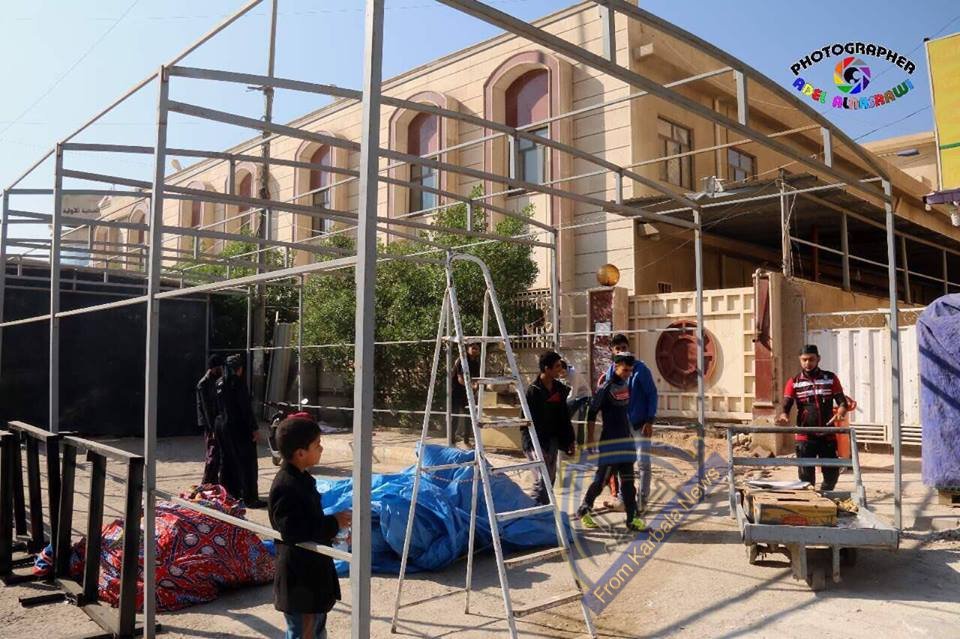 العتبة الحسينية تنصب قواطع المنيوم لتخفيف زخم زائري الاربعينية