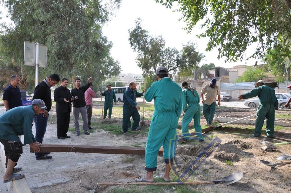 قائمقامية قضاء كربلاء ترفع اللافتات والإعلانات في الحدائق والحزرات الوسطية