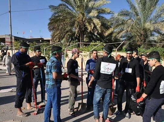 مجموعة شبابية في كربلاء تقوم بحملة تنظيف باب طويريج