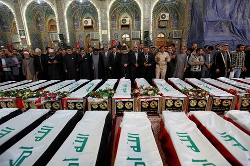 كربلاء تشهد تشييع 25 شهيدا سقطوا بالتفجير الانتحاري في جرف الصخر اليوم