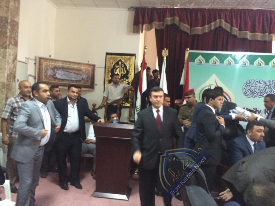 انسحاب محافظ كربلاء عقيل الطريحي واعضاء دولة القانون من جلسة المجلس