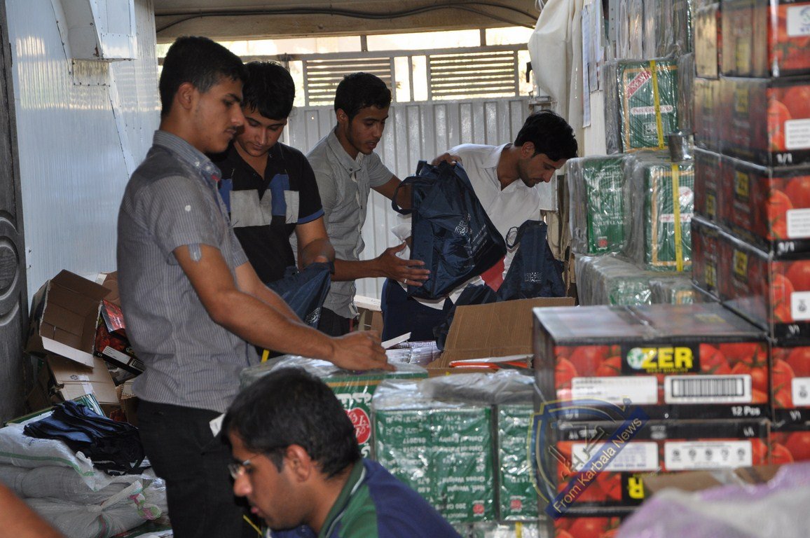 منظمة ايادي الرحمة توزع مواد غذائية على النازحين في كربلاء