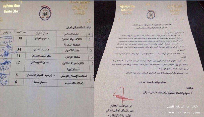 .التحالف الوطني يسلم رسمياً معصوم ترشيحه حيدر العبادي رئيساً للوزراء