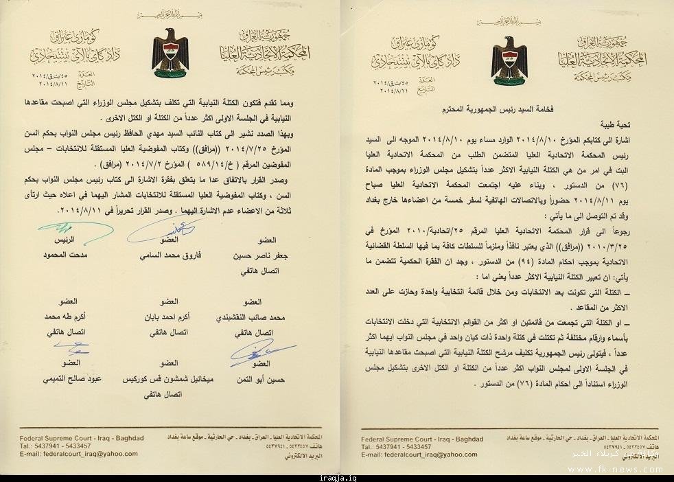 المحكمة الاتحادية تفسر دستوريا الكتلة الاكبر