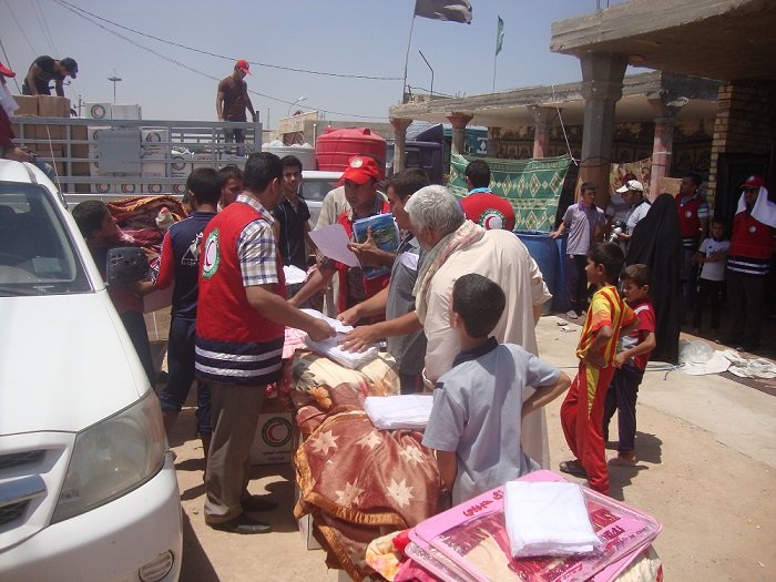 الهلال الاحمر شمول (3531)عائلة نازحة الى كربلاء بعملية توزيع السلات الغذائية والمواد الاغاثية