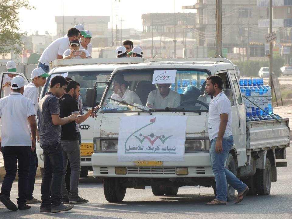 بجهود ذاتية...شباب كربلاء الافضل يقومون بأعانة النازحين