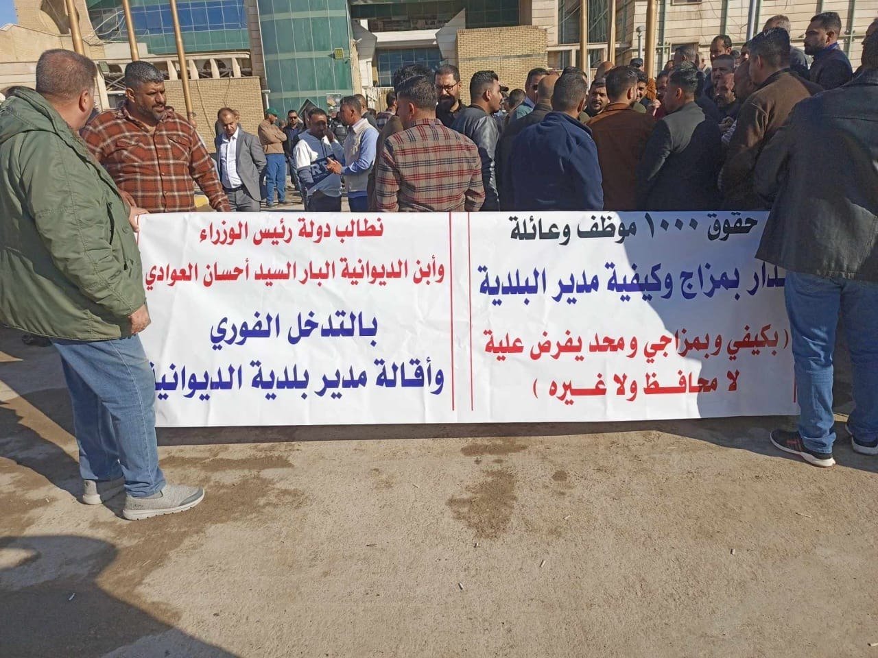 موظفو الديوانية يتظاهرون للمطالبة بتوزيع قطع الأراضي