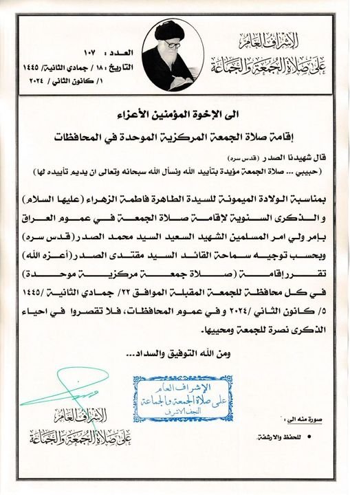 الصدر يوجه باقامة صلاة جمعة موحدة في المحافظات العراقية
