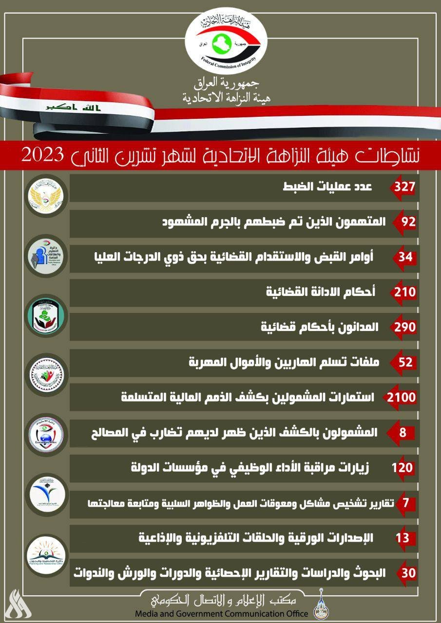 النزاهة: صدور 34 أمر قبض واستقدام بحق ذوي الدرجات العليا الشهر الماضي