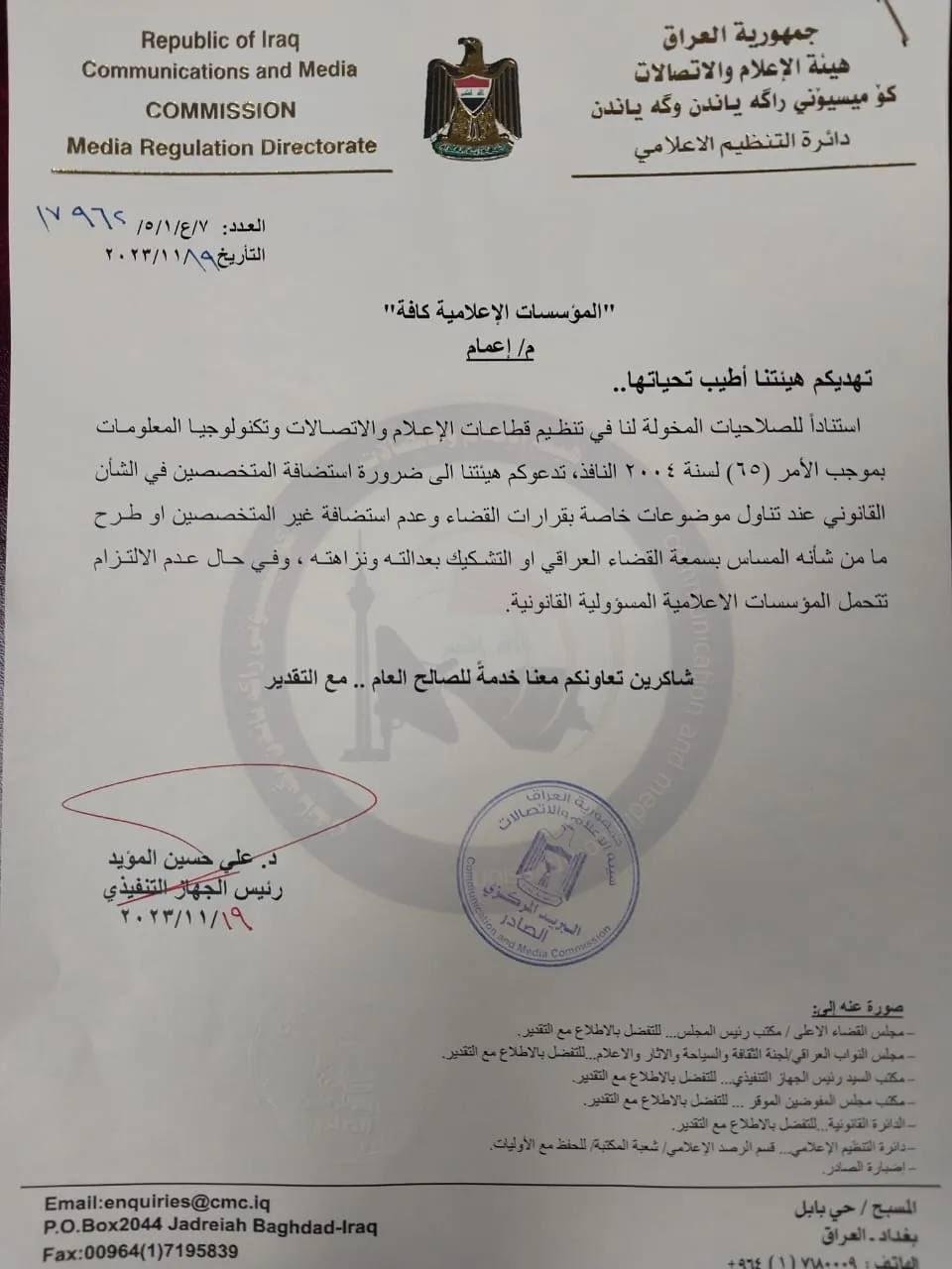 الإعلام والاتصالات تدعو لاستضافة المتخصصين بالشأن القانوني حصراً لعدم المساس بالقضاء