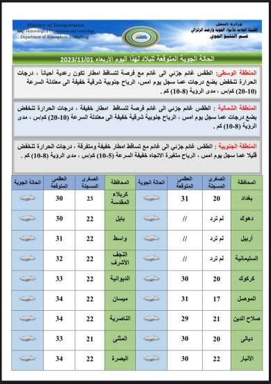 طقس العراق.. أمطار متفرقة وحرارة مرتفعة خلال الأيام المقبلة