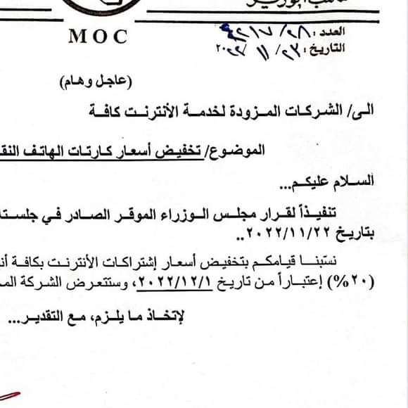 وزيرة الاتصالات هيام الياسري توجه شركات الانترنيت بتخفيض الاسعار بنسبة (20% ) وذالك اعتباراً من مطلع الشهر المقبل